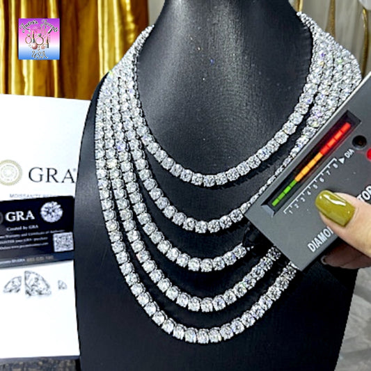 VVS1 Moissanite Tennis Chain – GRA Certified, 925 Sterling Silver/ Plated 18K Gold, 16"-24" Ships from USA